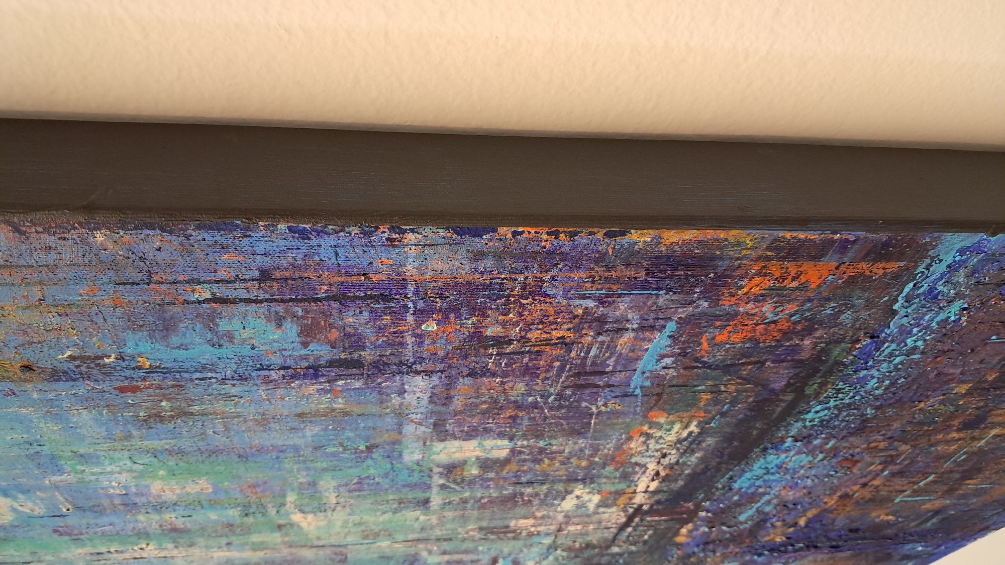 Ho impiegato oltre all'acrilico anche una base di gesso e stucco per creare unatexture leggera e coerente con il resto del dipinto.