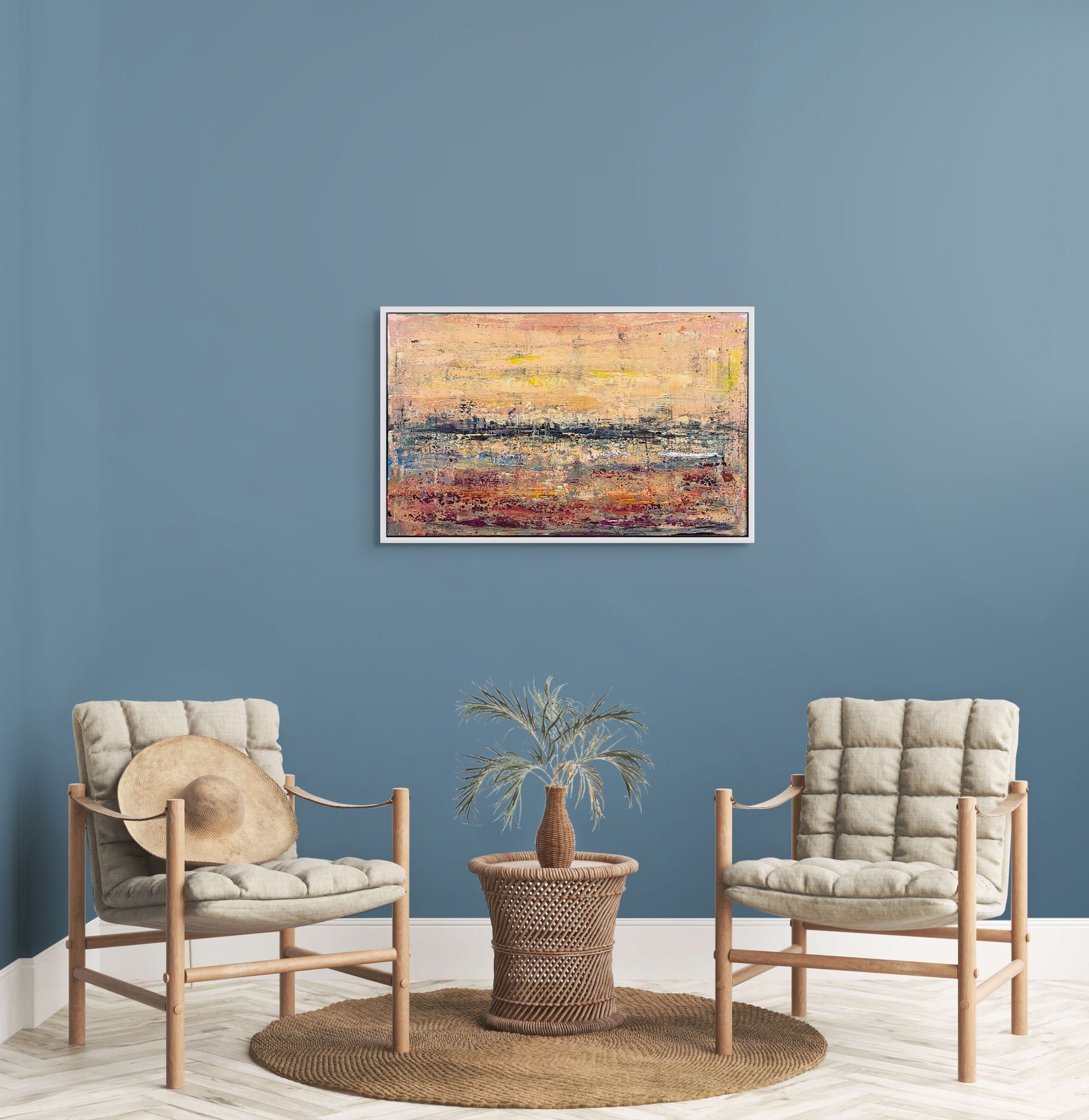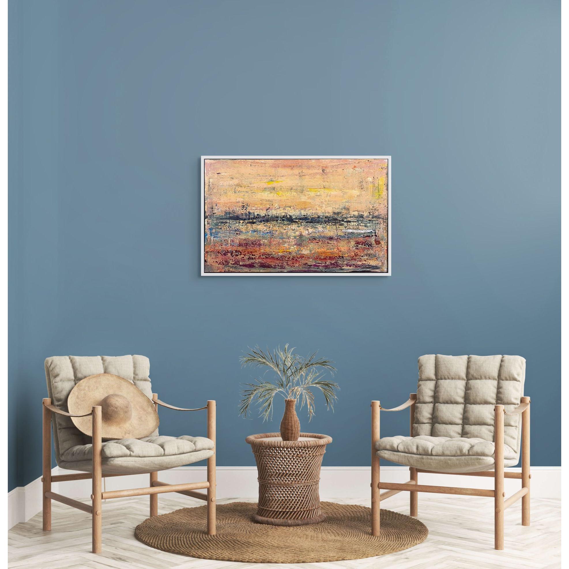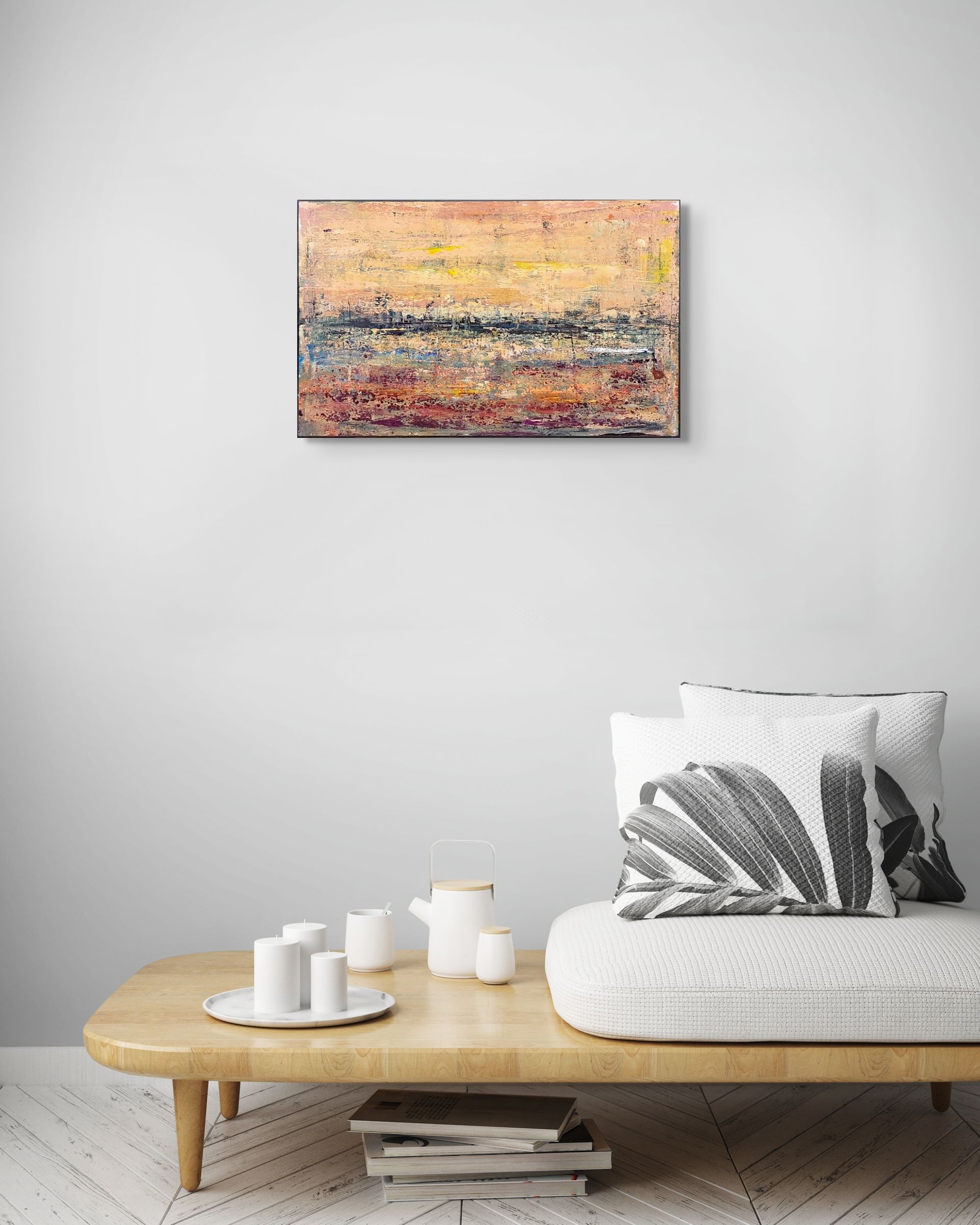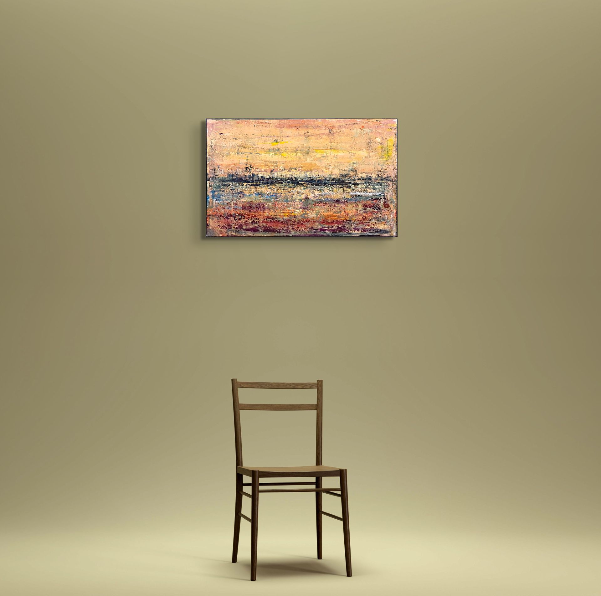 I colori seguono le sensazioni del momento, dove le tonalità calde e tenuisi intrecciano a texture materiche per evocare uno spazio temporale emotivo, sospesotra colori, quiete, romanticismo e astrazione.